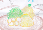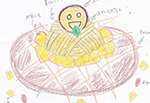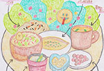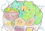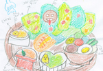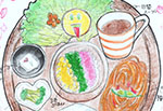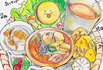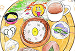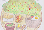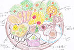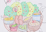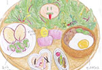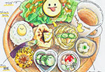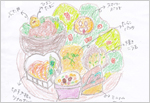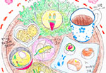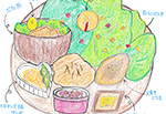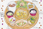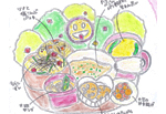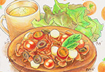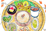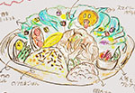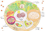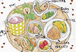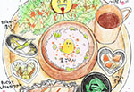A 畑の見えるランチ、B 菜の花と鶏そぼろのパスタ、C オムライス