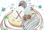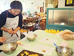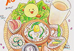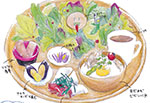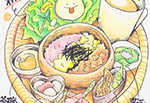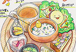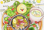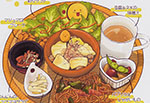 A 畑の見えるランチ、B たけのことアスパラのクリームパスタ、C カフェ風豚丼