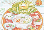 A 畑の見えるランチ、B しゃきしゃき菜の花と鶏そぼろのパスタ、C オムライス