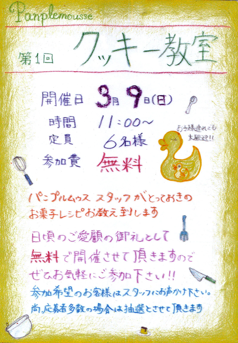 3月9日(日)クッキー教室を開催します【無料】(2014.2.3)