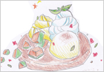 【8月季節のパンケーキ】は「モモのパンケーキ」です。