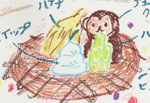 ピンクのアヒルがパンプルムゥスにやって来る。