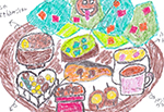 【6月季節のパンケーキ】は「ケロちゃんパンケーキ」です。