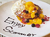 【季節のパンケーキ】は「マンゴーのパンケーキ」です。